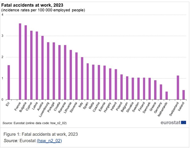 Η χώρα μας, σύμφωνα και με τα επίσημα στοιχεία της Eurostat, παρουσιάζει μια βελτιωμένη εικόνα συγκριτικά με τα υπόλοιπα κράτη μέλη της Ένωσης. Σύμφωνα με τα τελευταία στοιχεία που εξέδωσε η Eurostat τον Οκτώβριο του 2025, για τα εργατικά δυστυχήματα μεταξύ των χωρών της ΕΕ, η Ελλάδα βρίσκεται μεταξύ των τριών χωρών όπου παρατηρούνται τα λιγότερα θανατηφόρα εργατικά ατυχήματα, πίσω μόνο από τη Γερμανία και την Ολλανδία. Και παρά το γεγονός ότι τα τελευταία χρόνια και το εργατικό δυναμικό έχει αυξηθεί κατά 509.000 εργαζομένους και η παραγωγική δραστηριότητα έχει αυξηθεί.