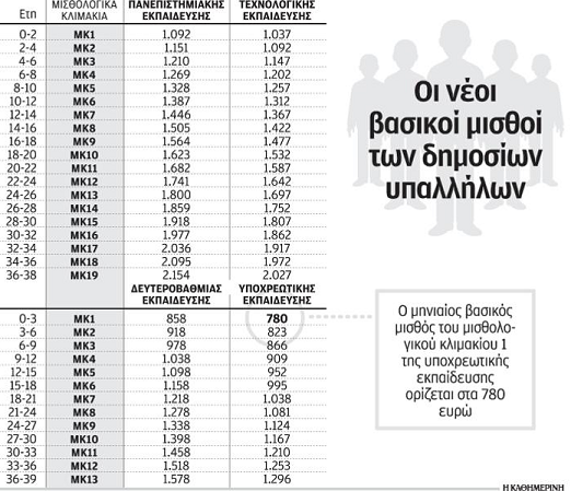 Το νέο μισθολόγιο των δημοσίων υπαλλήλων