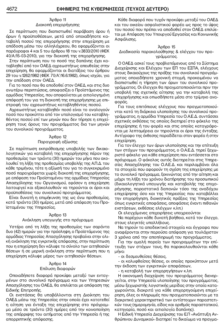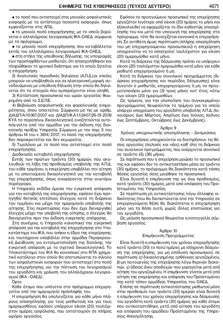 Η διάρκεια της επιχορήγησης ορίζεται για χρονικό διάστημα μέχρι δύο (2) μήνες και συγκεκριμένα από 1/4/2010 έως 31/10/2010 εξαιρουμένου του διαστήματος από 1/6/2010 έως 30/9/2010.