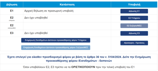 Όσοι έχουν επιλεγεί από την ΑΑΔΕ για αυτόματη υποβολή και εκκαθάριση , βλέπουν ήδη άμεσα στην οθόνη τους το ποσό φόρου που προκύπτει να πληρώσουν, αμέσως μόλις κάνουν είσοδο με τους κωδικούς τους στην εφαρμογή Ε1.